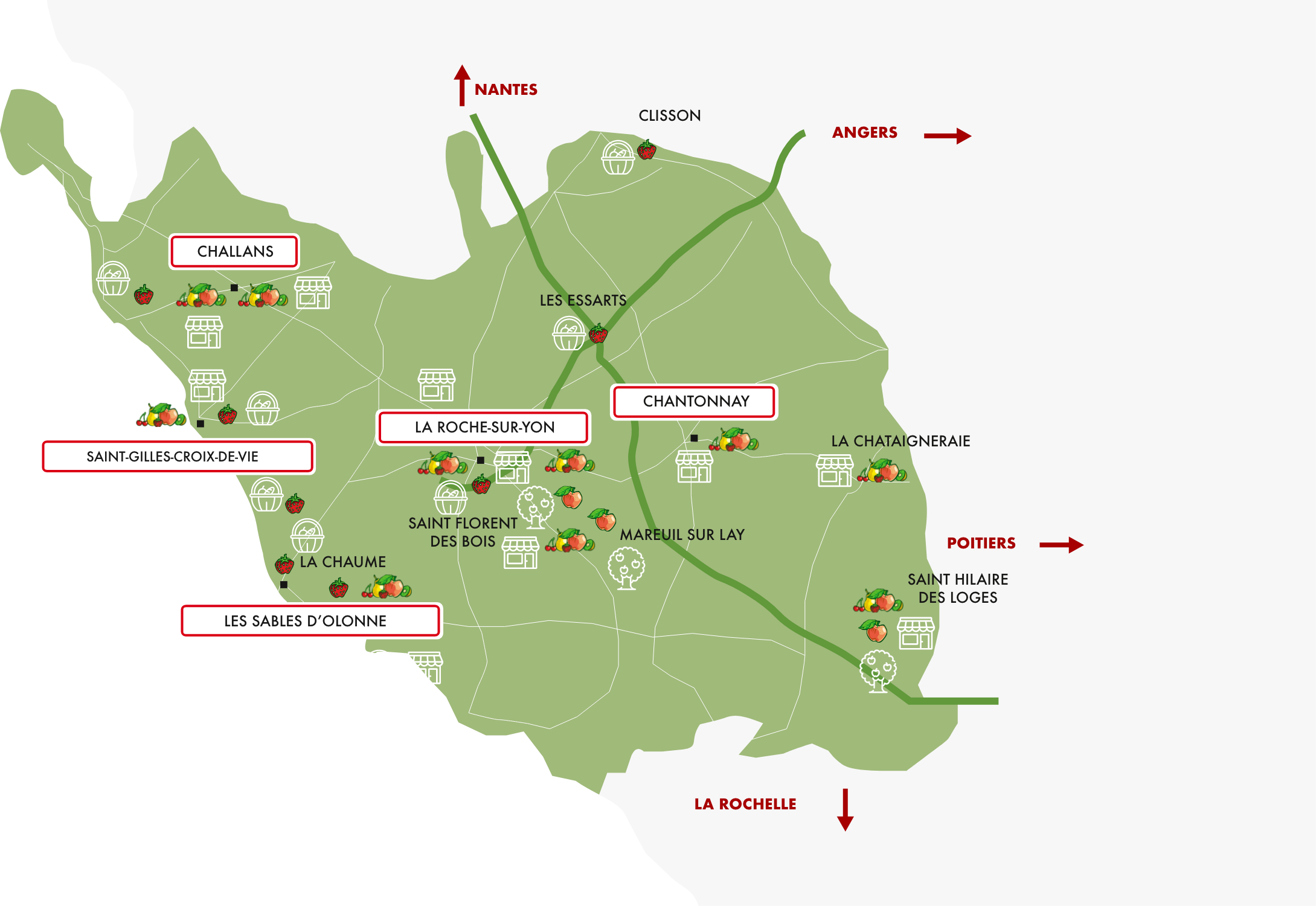 Depuis 2010, nous sommes adhérents au réseau Chapeau de Paille pour notre vente à cueillir. Nos trois sites, à Mareuil sur Lay, St-Florent des Bois et à Saint Hilaire des Loges (Vendée – 85), s’inscrivent pleinement dans la tendance actuelle : un mode de vie tourné vers le respect de l’environnement et un retour à la consommation de produits de saison cultivés localement.